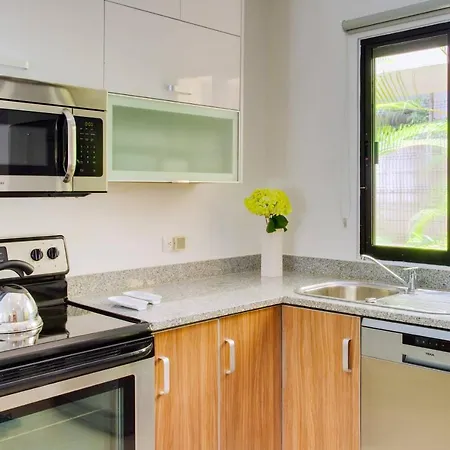 Stylish 2B Apartment With Direct Pool Access In Aldea Zama includes self-catering facilities like an electric kettle, a fridge, and kitchenware for guests' convenience. Guests can reach Stylish 2B Apartment With Direct Pool Access In Aldea Zama by car from Aeropuerto de Playa del Carmen airport in 54 minutes.
